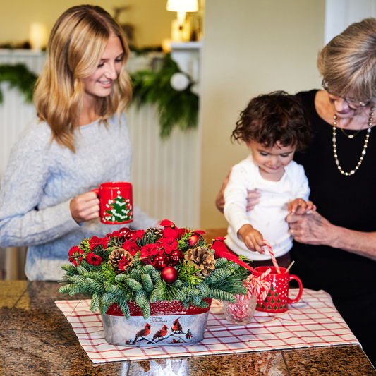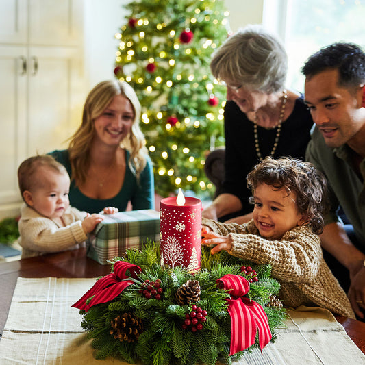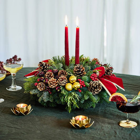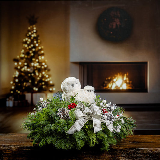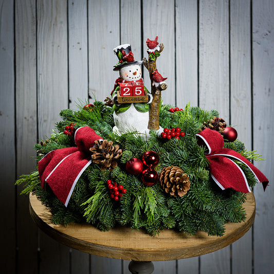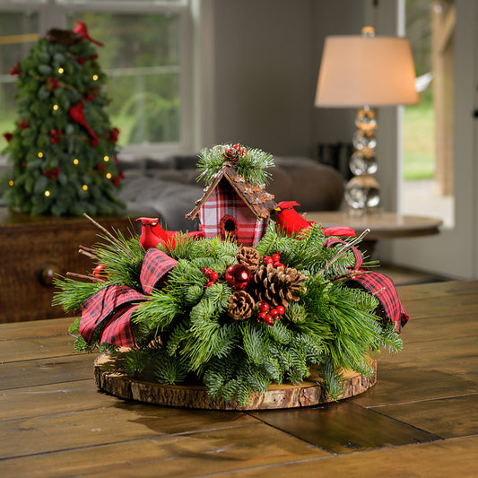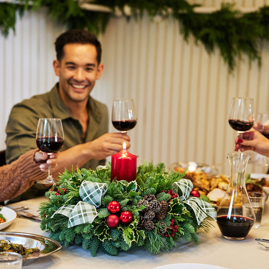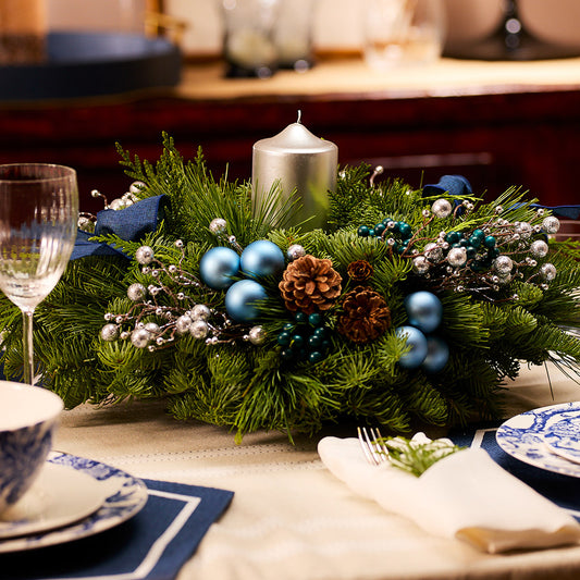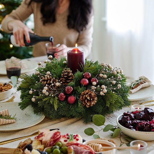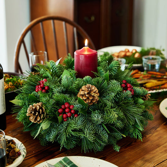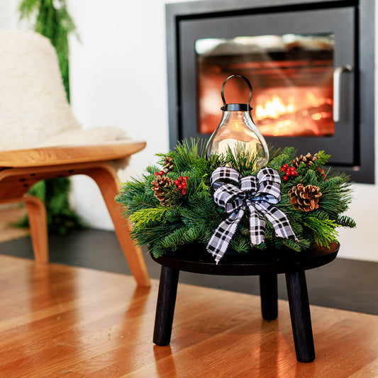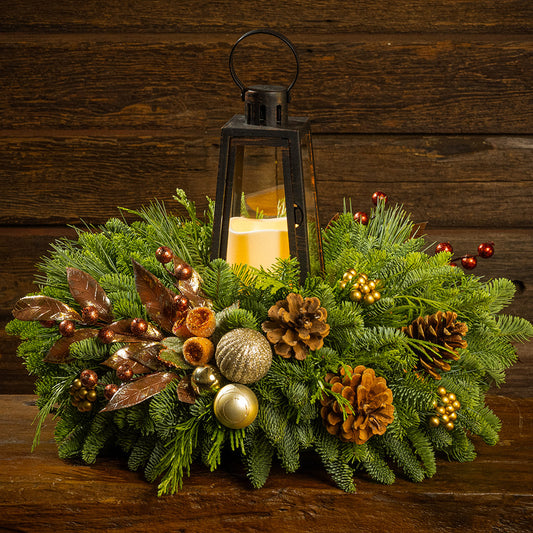 Our fresh evergreen centerpieces are always best sellers and can be used in many different ways. Many people enjoy putting them on their dining tables as table centerpieces to look at during mealtime. Many of the centerpieces available for purchase, like the Pacific Bay Centerpiece, Small Holiday Centerpiece, Cascade Centerpiece, Radiant Holiday, and Snowberry Glow, among a few others, all have candle holders for floating candles and pillar candles to bring more Christmas light to your space. You can even set your own tea lights around the centerpieces if you're looking to lighten a darker corner of the house.