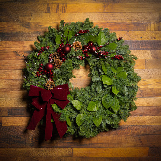 Live Christmas wreaths are a great DIY choice for your home decor because they're handmade with love! They start out as fresh boughs that are hand-harvested and then turned into beautiful live holiday decorations. Not only do fresh holiday wreaths smell wonderful when you purchase them, but they are also hand-crafted with love and great attention to detail!