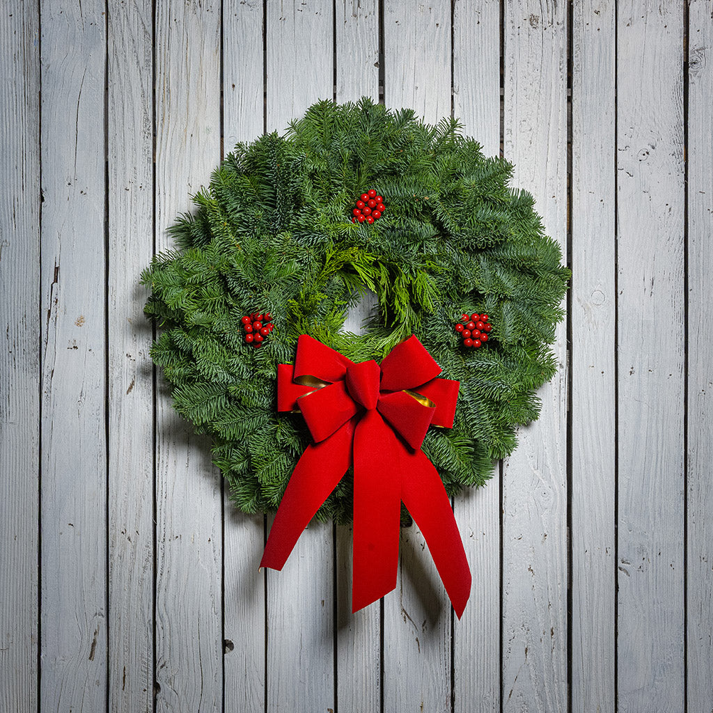An instant hit, our 22" Olympic Mountain Berry wreath is the epitome of Christmas. The bright fragrance of fresh western red cedar and noble fir is as instantly recognizable as the smell of Christmas. Darling groups of red berries and a big bright red hand-tied bow make this the holiday gift of the season! The 22" size is versatile and works on doors or smaller spaces.