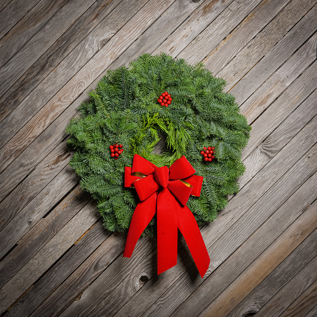If you long for the majestic peony or bright tulips of summer, we have multiple options with floral wreath designs. For fall wreaths, you'll find evergreen and pinecone wreaths or ornament wreaths adorned with green leaves, magnolia and bay leaves, and fall ornaments. If you're looking for winter wreath ideas, look for simple wreaths or berry wreaths with colorful red berries, white berries, warm white Christmas lights, pine needles and bristles, snowflakes, and red hand-tied bows. Traditional farmhouse Christmas wreaths and modern farmhouse decor are trending this season, and we offer a number of beautiful options that will tie in perfectly with your farmhouse home decor. Every Christmas wreath is beautifully crafted to hang on the front door where it greets you every time you walk in, or hanging as wall decor in the living room or entryway where you can enjoy the amazing evergreen scent.
