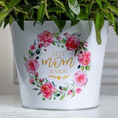 Guaranteed Delivery by Mother’s Day! Show your extraordinary mom that she’s the best mom ever with this elegant Mother's Day centerpiece. Our heartfelt Simply the Best arrangement combines beautiful life-like faux (artificial) pink roses and gorgeous faux dogwood flowers with fresh salal and green huckleberry. They burst from a delightful white metal container that says, ‘Best Mom Ever.’ Exuding a sense of timeless elegance, this arrangement perfectly mirrors a special mother’s love and grace. This centerpiece measures approximately 13” across x 12” tall.