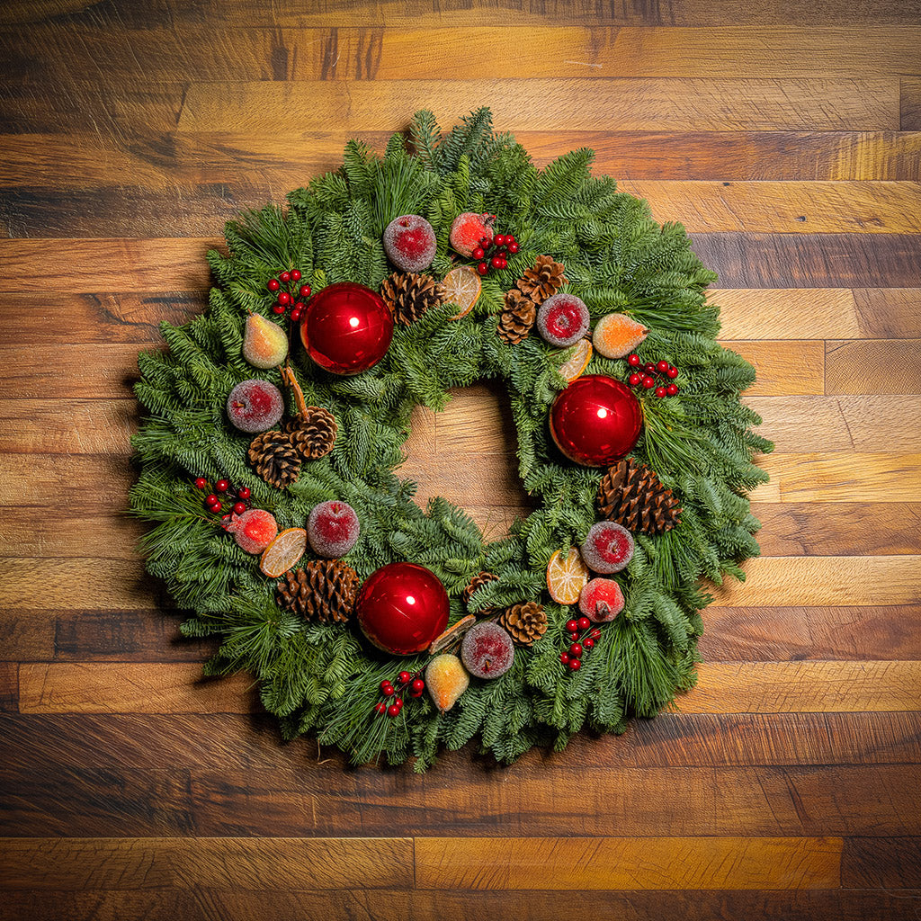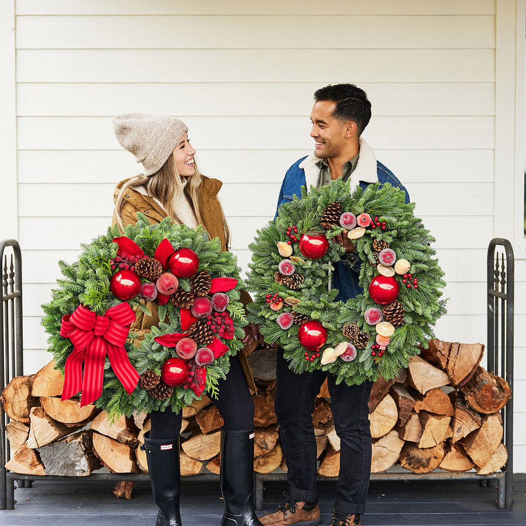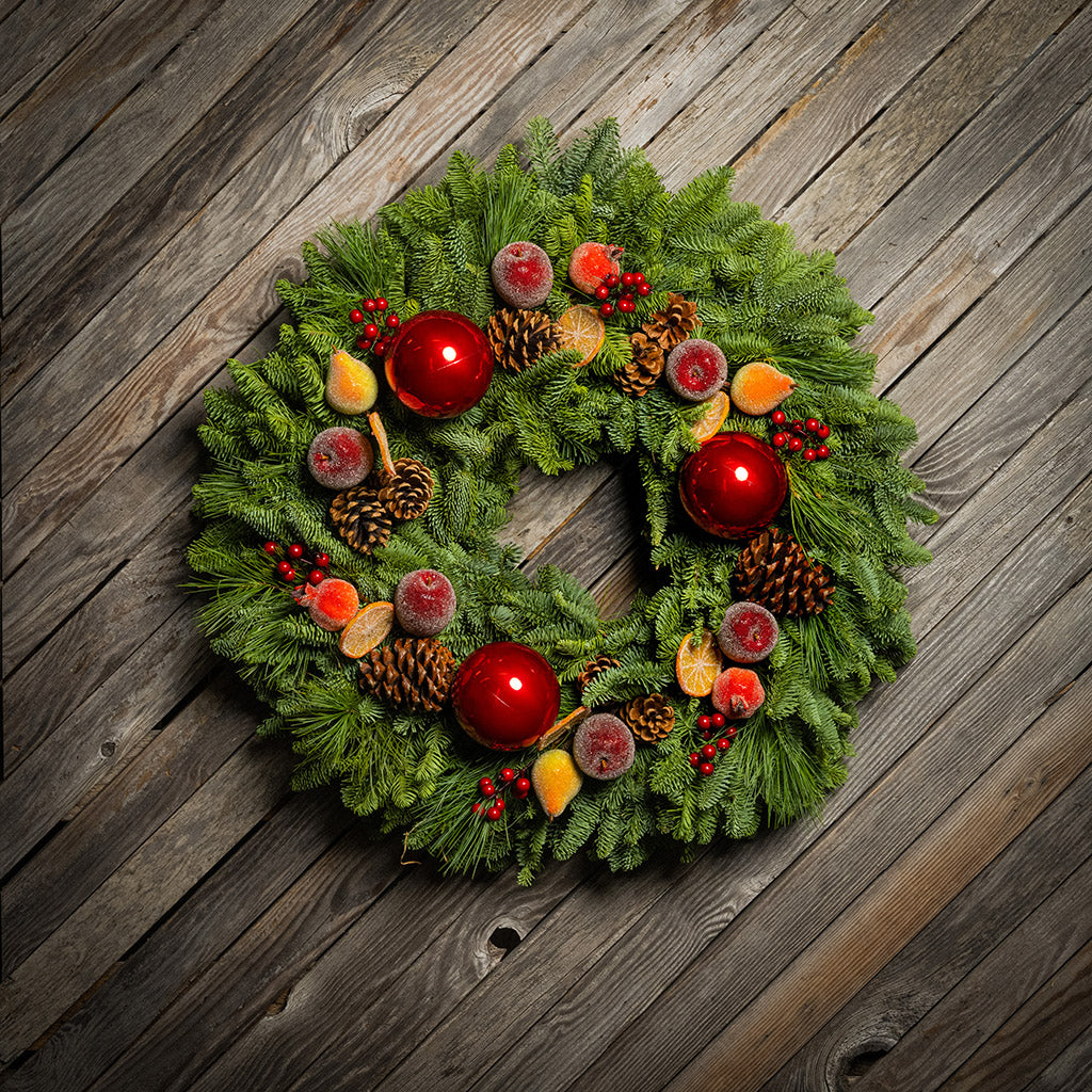 Wreaths absorb moisture through their cut ends. To increase the health and lifespan of your wreath, spritz the back with water every 2-3 days. Evergreens will drink the water, and you will find your wreath to be more fragrant and last longer.